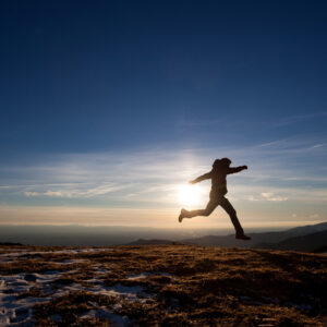 silhouette of man running in sunset sky